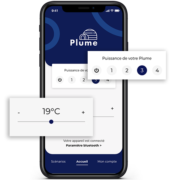 L’application Plume offre de nombreuses fonctionnalités pour contrôler votre ventilation rafraichissante ou réchauffante et améliorer votre sommeil.